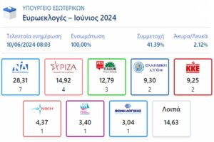 ΠΟΛΙΤΙΚΑ Ευρωεκλογές 2024: Πρωτιά της ΝΔ – Τα τελικά αποτελέσματα – Ποιοι εκλέγονται Διαβάστε Περισσότερα » 10/06/2024