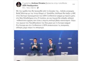 CONFERENCE LEAGUE Δημάτος: Μάλλον, στις 24 Ιουλίου ο αγώνας της ΑΕΚ Διαβάστε Περισσότερα » 19/06/2024