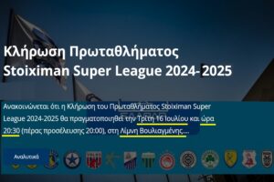 SUPER LEAGUE Super League: Την επόμενη Τρίτη (16/7), η κλήρωση της σεζόν 2024-2025 Διαβάστε Περισσότερα » 09/07/2024