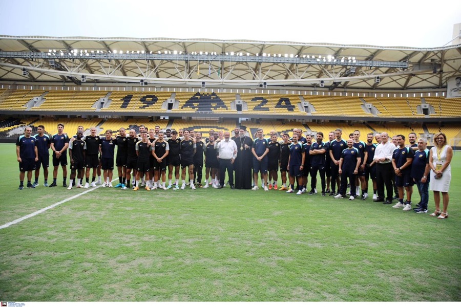 Την ακολουθία του Αγιασμού τέλεσε ο Σεβασμιώτατος Μητροπολίτης Νέας Ιωνίας, Φιλαδελφείας, Ηρακλείου και Χαλκηδόνος κ. Γαβριήλ, παρόντος του ιδιοκτήτη της ΠΑΕ-ΑΕΚ Μάριου Ηλιόπουλου και μελών της διοίκησης.