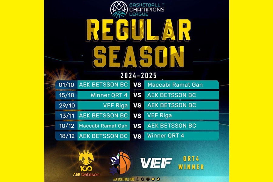 Το πρόγραμμα της ΑΕΚ Betsson έγινε γνωστό, στο BCL, με αντίπαλο τη Ραμάτ Γκαν, στην πρεμιέρα της διοργάνωσης, στα Άνω Λιόσια, την 1 Οκτωβρίου.