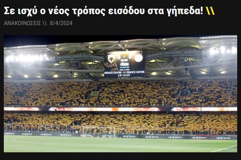 Από τις 9 Απριλίου 2024 τίθενται σε εφαρμογή οι κυβερνητικές αποφάσεις για τον νέο τρόπο εισόδου των φιλάθλων στα γήπεδο και στάδια όλης της χώρας.