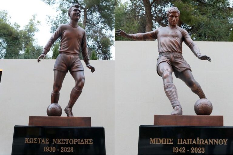 Τα αγάλματα των θρύλων της ΑΕΚ, του “τεράστιου” Κώστα Νεστορίδη και του “πολύ μεγάλου και μοναδικού”, Μίμη Παπαϊωάννου προβάλλουν, από σήμερα 23 Ιουλίου 2024, στον περιβάλλοντα χώρο της «Αγιά-Σοφιάς», παρουσία του Δημήτρη Μελισσανίδη και του Μάριου Ηλιόπουλου.