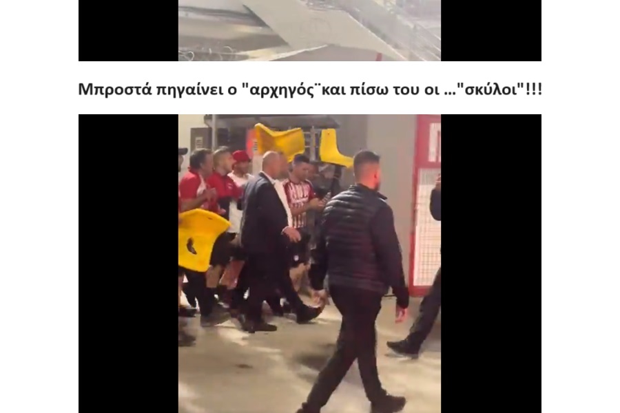 Ο “λαοπρόβλητος” ηγέτης Μαρινάκης, έξω από το «Γ. Καραϊσκάκης», συνοδεία …“βαρβάρων”, με λεηλατημένα καθίσματα-λάφυρα, από την «Αγιά-Σοφιά».