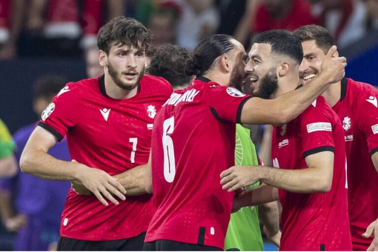 Η «πρωτάρα» Γεωργία πανηγύρισε την πρόκρισή της, στη φάση των «16» του Euro. Στο πλαίσιο της 3ης αγωνιστικής του 6ου ομίλου, επικράτησε της Πορτογαλίας 2-0 και τερμάτισε την 3η θέση.