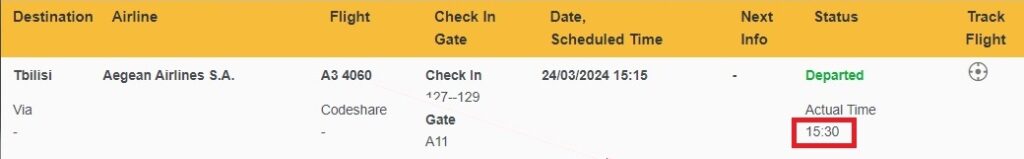 Η αποστολή έφτασε στο αεροδρόμιο «Ελευθέριος Βενιζέλος» και θα αναχωρήσει στις 15:00 ή λίγο αργότερα, με προορισμό την πρωτεύουσα της Γεωργίας.