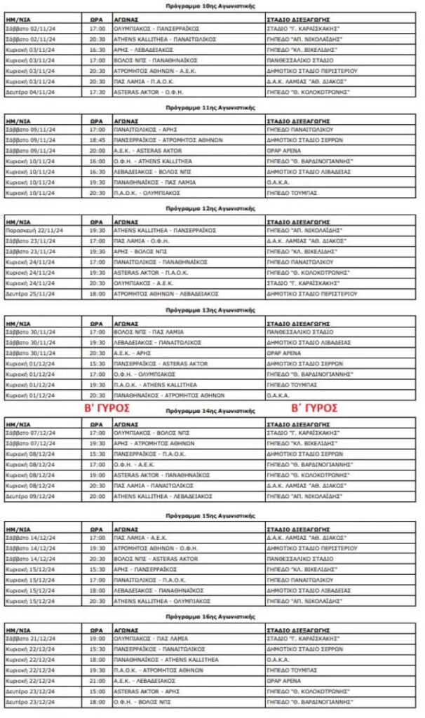 Όλο το πρόγραμμα της Super League, μέχρι και την 16η αγωνιστική