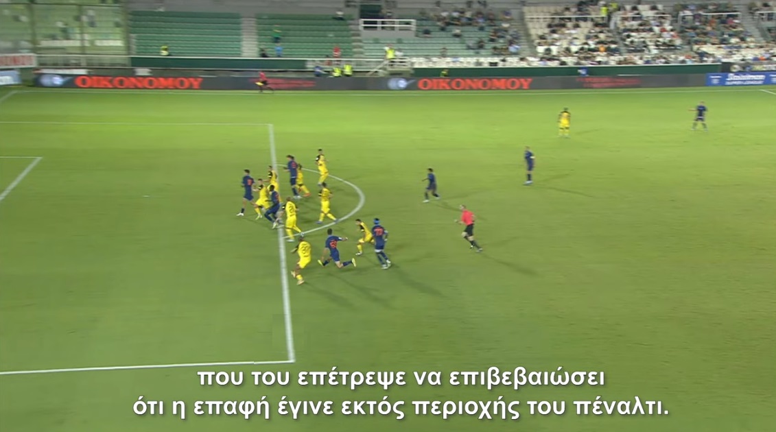 «Σε αυτή την περίπτωση ο VAR θα πρέπει να ελέγξει αν το φάουλ συνέβη εντός ή εκτός της περιοχής του πέναλτι. Ο VAR έλεγξε διαφορετικές κάμερες και βρήκε τη σωστή κάμερα που του επέτρεψε να επιβεβαιώσει ότι η επαφή έγινε εκτός περιοχής του πέναλτι».