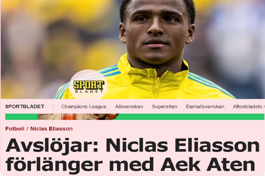 Σύμφωνα με πληροφορίες της Sportbladet, ο διεθνής Σουηδός επιθετικός Νίκλας Ελίασσον μένει στην ΑΕΚ, μέχρι το 2028, αφού προχώρησε σε επέκταση του συμβολαίου του, για ένα ακόμη χρόνο, με τον μεγάλο ελληνικό σύλλογο.