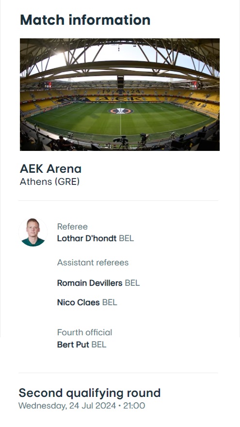 Η UEFA όρισε τον Βέλγο Λόταρ Ντοντ, για τον αγώνα ΑΕΚ – Βελέζ/Ίντερ ντ’ Εσκάλδες, την Τετάρτη 24 Ιουλίου 21.00, στην «Αγιά-Σοφιά».