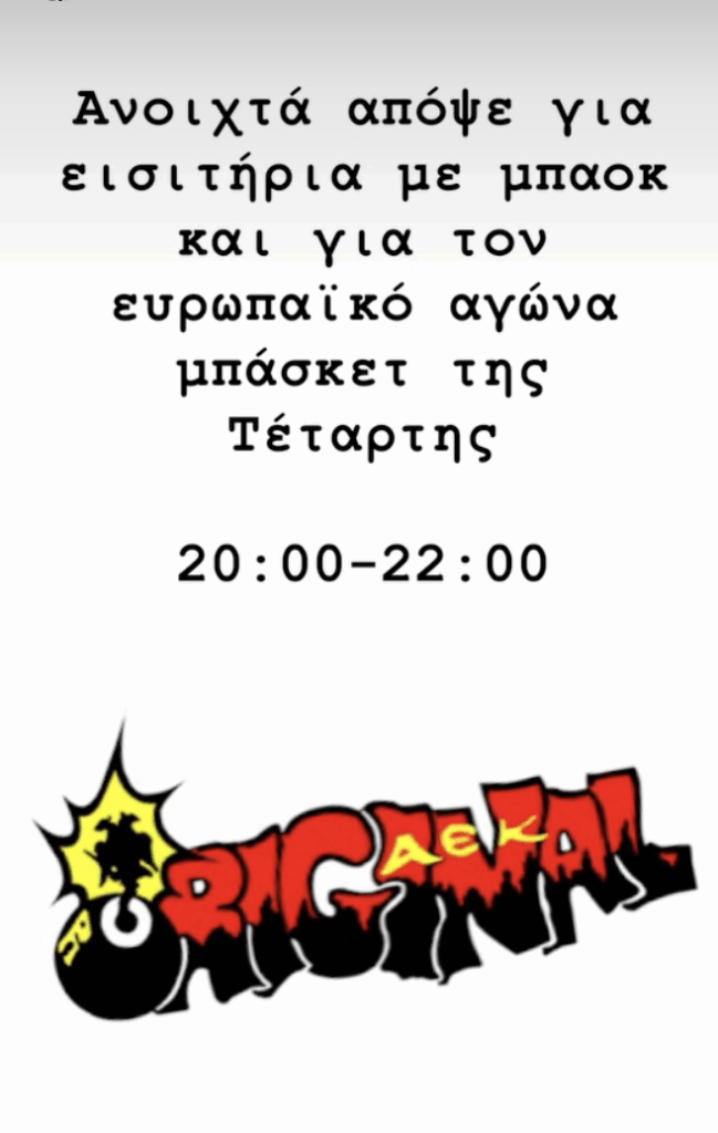 «Ανοιχτά απόψε για εισιτήρια με ΠΑΟΚ και για τον ευρωπαϊκό αγώνα μπάσκετ της Τετάρτης 20:00 – 22:00», έγραψαν χαρακτηριστικά.