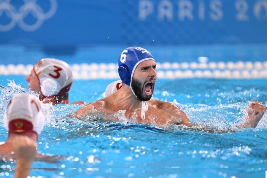 Η εθνική υδατοσφαίρισης των ανδρών διπλασίασε τις νίκες της, στο Ολυμπιακό τουρνουά του Παρισιού, επικρατώντας 17-16 του Μαυροβουνίου, στα πέναλτι. Ο κανονικός αγώνας ολοκληρώθηκε ισόπαλος 12-12, αφού η ελληνική ομάδα ισοφαρίστηκε, δύο δευτερόλεπτα πριν τη λήξη.