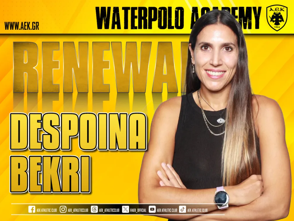 «Η ΑΕΚ ανακοινώνει την ανανέωση της συνεργασίας της με την Δέσποινα Μπεκρή, η οποία θα παραμείνει προπονήτρια της Ακαδημίας Υδατοσφαίρισης στα τμήματα των κοριτσιών.