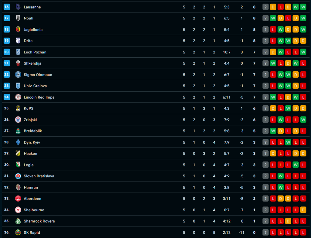 Η βαθμολογία της League Phase:
