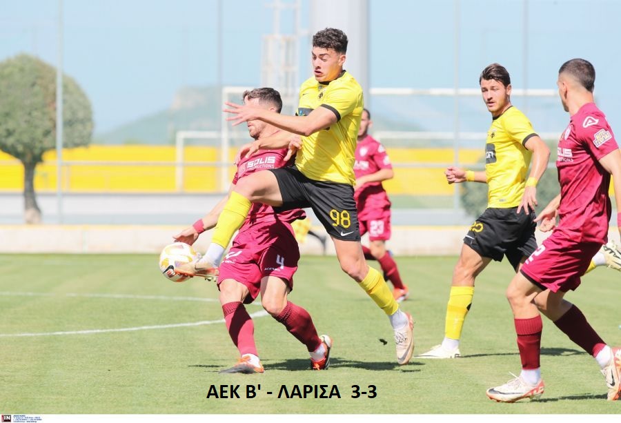Συναρπαστικό παιχνίδι προσέφεραν ΑΕΚ Β’ και Λάρισα (3-3), παρουσία του Ματίας Αλμέιδα και του Μπρούνο Άλβες, στο «Σεραφείδειο» γήπεδο των Σπάτων, για τη 2η αγωνιστική των πλέι-οφ του Α’ Ομίλου της Super League 2.
