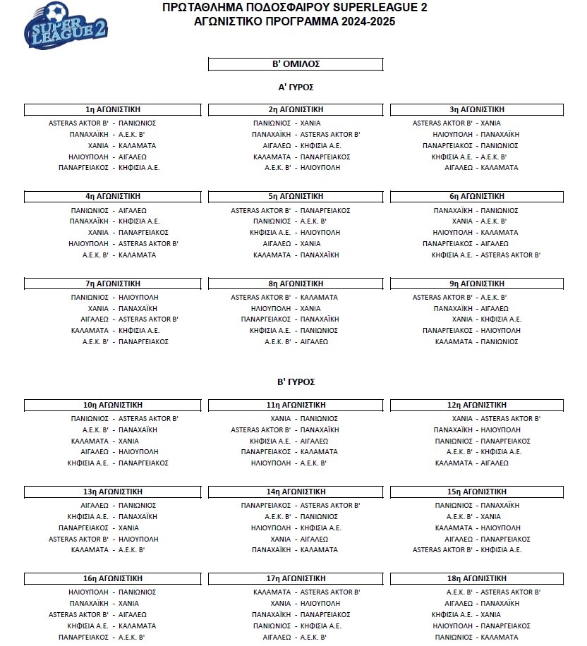 Το πρόγραμμα της ΑΕΚ Β΄:
