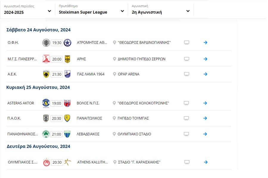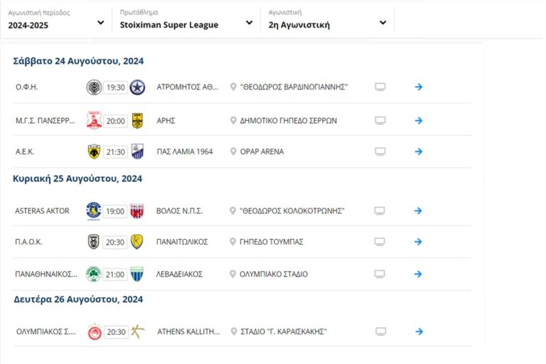 Αναλυτικά, το πρόγραμμα της 2ης αγωνιστικής της Super League: