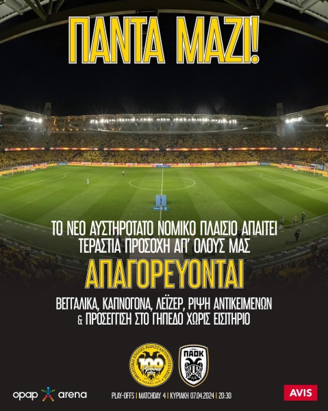 ΠΑΡΩΝ της ΑΕΚ ο λαός… Πανελλαδική κινητοποίηση για την κεκλεισμένων των θυρών αναμέτρηση με το Λεβαδειακό! 21/02/2026