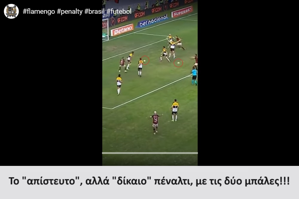 Τη στιγμή, που ο επιθετικός της Φλαμένγκο πάτησε περιοχή, υπήρχε και …δεύτερη μπάλα στον αγωνιστικό χώρο, την οποία ο αμυντικός της Κρισιούμα κλώτσησε, προς το μέρος του επιθετικού, για να τον δυσκολέψει στην εκτέλεση. Ο διαιτητής, αμέσως, χωρίς να σκεφτεί, έδειξε την άσπρη βούλα.